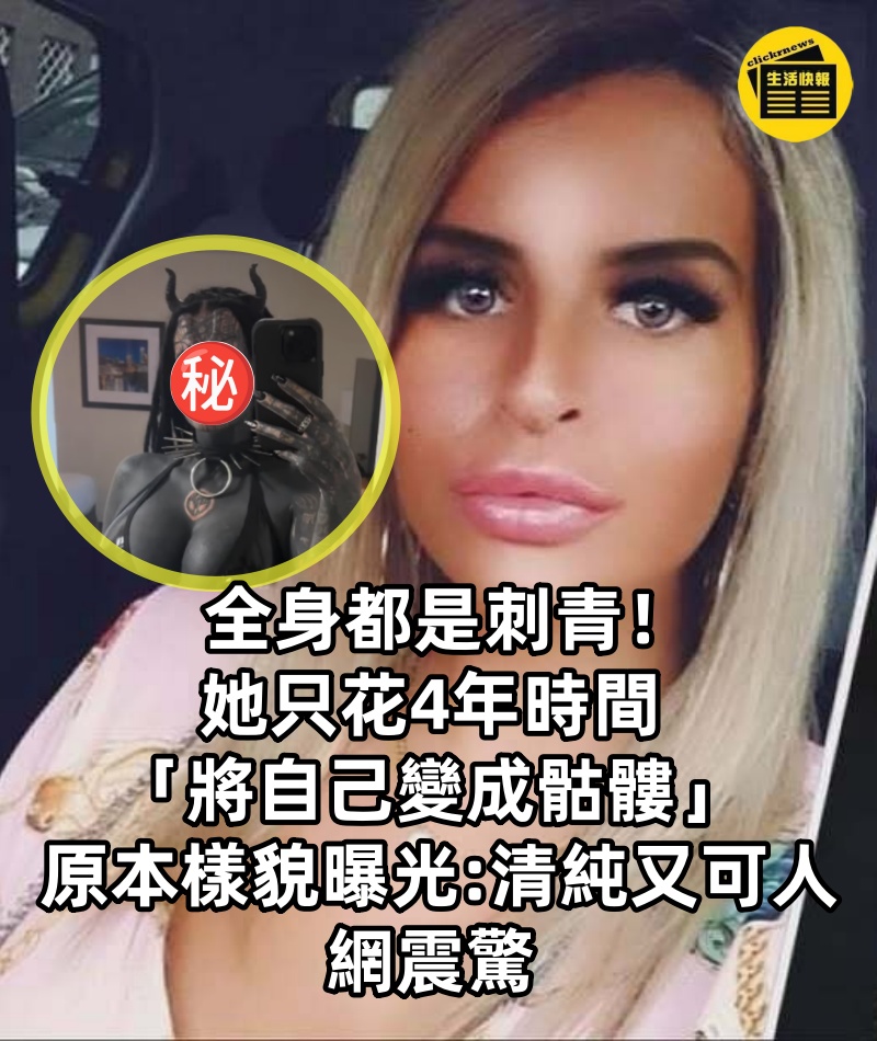 全身都是刺青!她只花4年時間「將自己變成骷髏」 原本樣貌曝光「清純又可人」網震驚