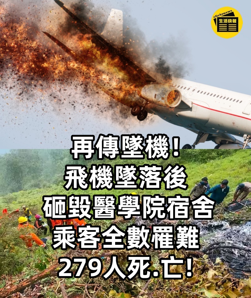 再傳墜機!飛機墜落後, 砸毀醫學院宿舍,乘客全數罹難,279人死.亡!