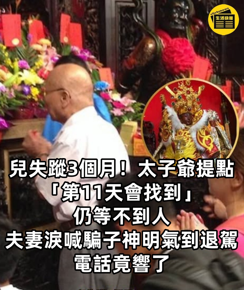 兒失蹤3個月!太子爺提點「第11天會找到」仍等不到人,夫妻淚喊騙子「神明氣到退駕」電話竟響了