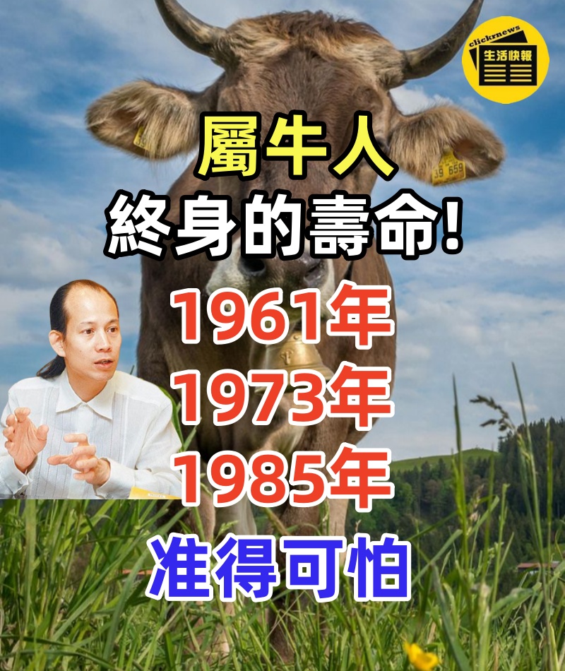 屬牛人的終身的壽命!!! 1961、1973、1985年, 准得可怕