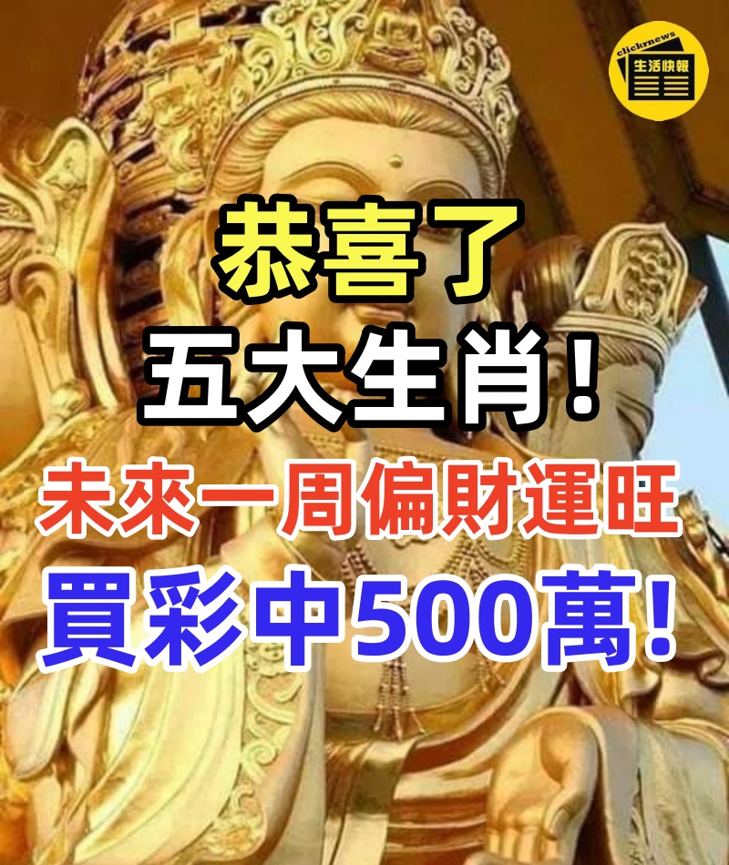恭喜了五大生肖!未來一周偏財運最旺!買彩可能中500萬!
