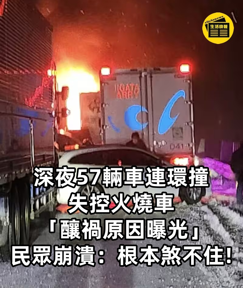 快訊/深夜「57輛車連環撞」失控火燒車 「釀禍原因曝光」民眾崩潰: 根本煞不住!