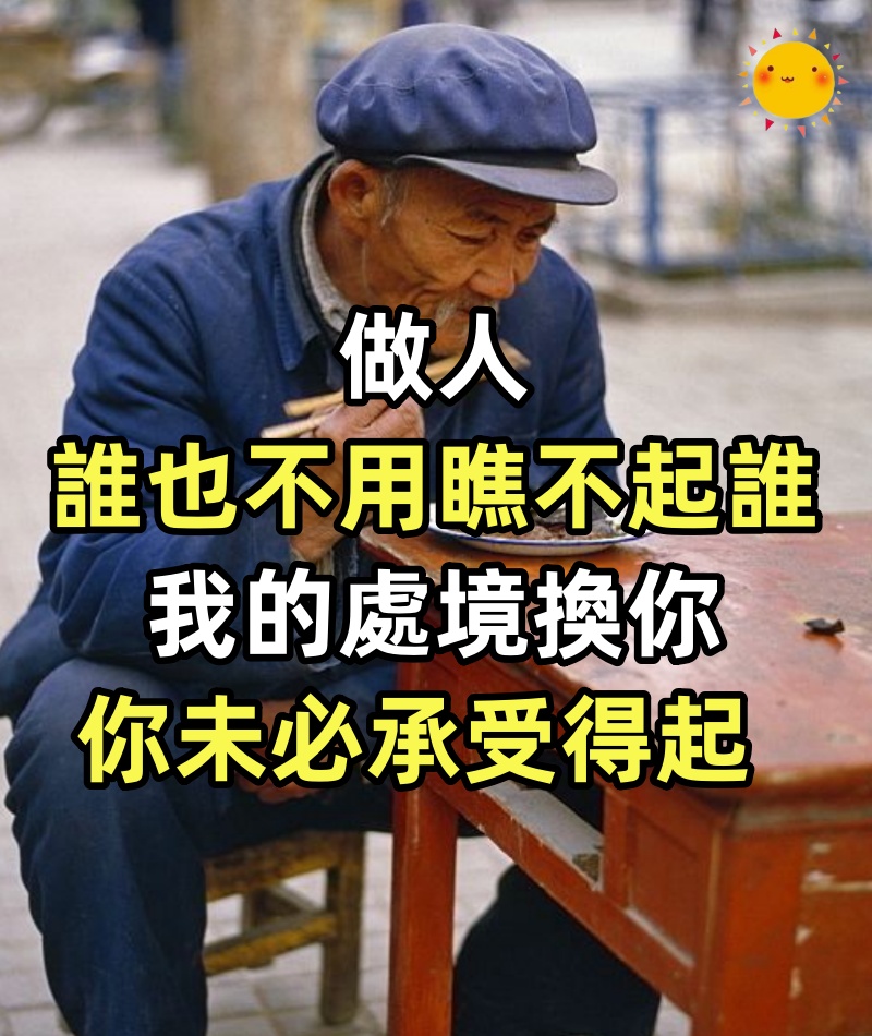 做人,誰也不用瞧不起誰,我的處境換你,你未必承受得起