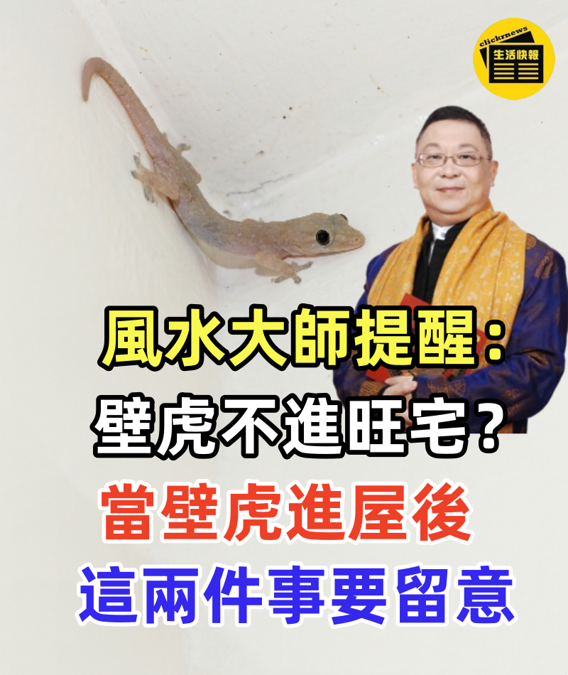 1/6 【風水大師提醒:壁虎不進旺宅?當壁虎進屋後,這兩件事要留意!】 「壁虎不進旺宅」這句老話,在華人社會流傳了幾百年。 許多人一抬頭看見天花板上的小身影,心裡立刻「咯噔」一下:是不是財運要跑? 2/6 家運要衰? 其實,風水師傅