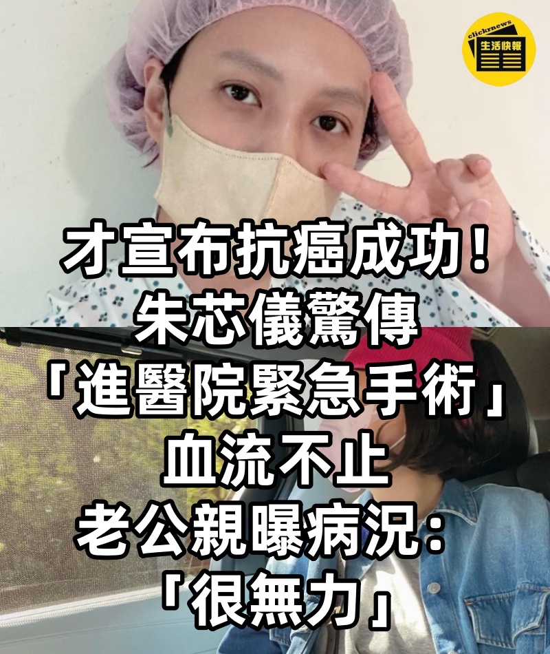 才宣布抗癌成功!朱芯儀驚傳「進醫院緊急手術」血流不止 老公親曝病況:「很無力」