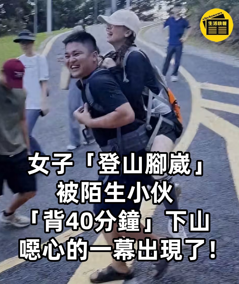 1/7 山路上,一名女子崴腳無法下山,一位陌生男子穿著拖鞋徒步將她背下三公里山路,全程用時40分鐘。 結果沒想到,噁心的一幕就出現了。 事情發生在城郊一座熱門登山景點,那天人不算少,天氣悶熱山路濕滑,一名女子在下山途中崴了腳,站不起來,坐在石階邊。 她穿著專業的戶外服裝,明顯