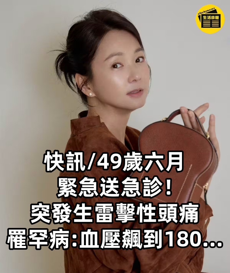 1/3 49歲資深女星六月於1997年出道至今,演出過多部戲劇作品,2001年更憑藉《逆女》獲得金鐘獎單元劇最佳女主角獎。然而近日卻傳出她被送進急診,更被檢查出罹患「可逆性腦血管收縮症」,如果未及時治療恐引發腦出血或梗塞。 2/3 根據《鏡周刊》