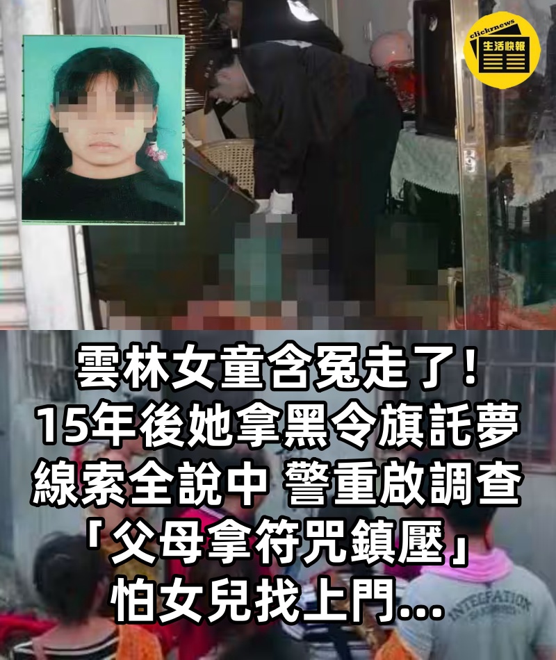 雲林女童含冤走了!!15年後她「拿黑令旗託夢」線索全說中 警重啟調查「父母拿符咒鎮壓」:怕女兒找上門...