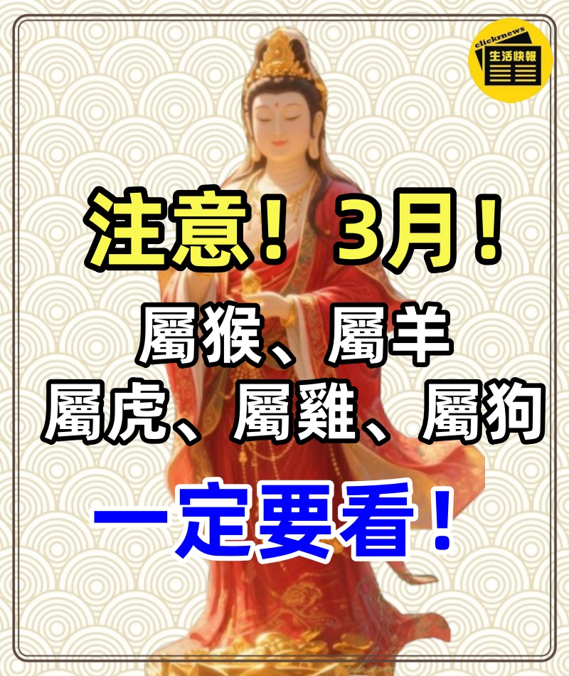 注意!3月(屬猴、屬羊、屬虎、屬雞、屬狗) 一定要看!