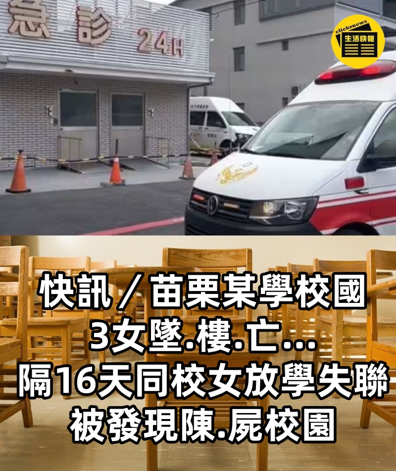 快訊/苗栗某學校國3女墜.樓.亡…隔16天同校女「放學失聯」被發現陳.屍校園