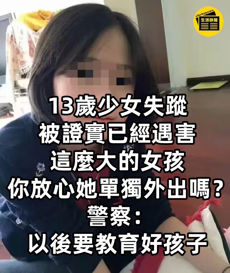 13歲少女失蹤被證實已經遇害,這麼大的女孩你放心她單獨外出嗎?警察: 以後要教育好孩子。