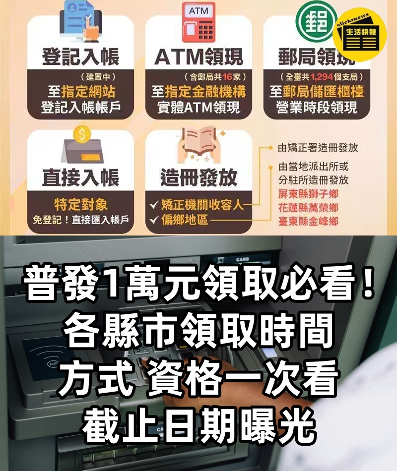 普發1萬元領取必看!各縣市領取時間、方式、資格一次看,截止日期曝光