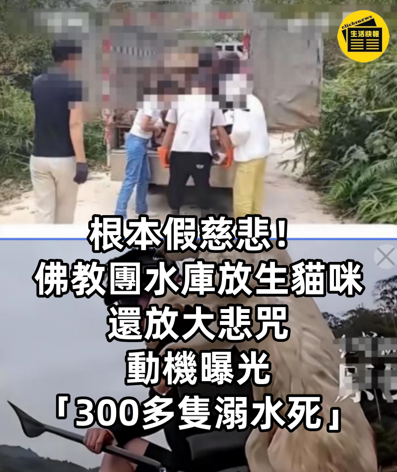 根本假慈悲!佛教團「水庫放生貓咪」還放大悲咒 動機曝光「300多隻溺水死」