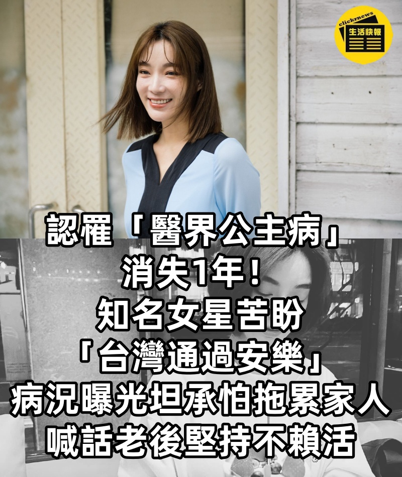 認罹「醫界公主病」消失1年!知名女星苦盼「台灣通過安樂」病況曝光 「坦承怕拖累家人」喊話老後堅持不賴活