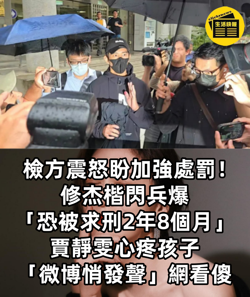 檢方震怒盼加強處罰!修杰楷閃兵爆「恐被求刑2年8個月」 賈靜雯心疼孩子「微博悄發聲」網看傻
