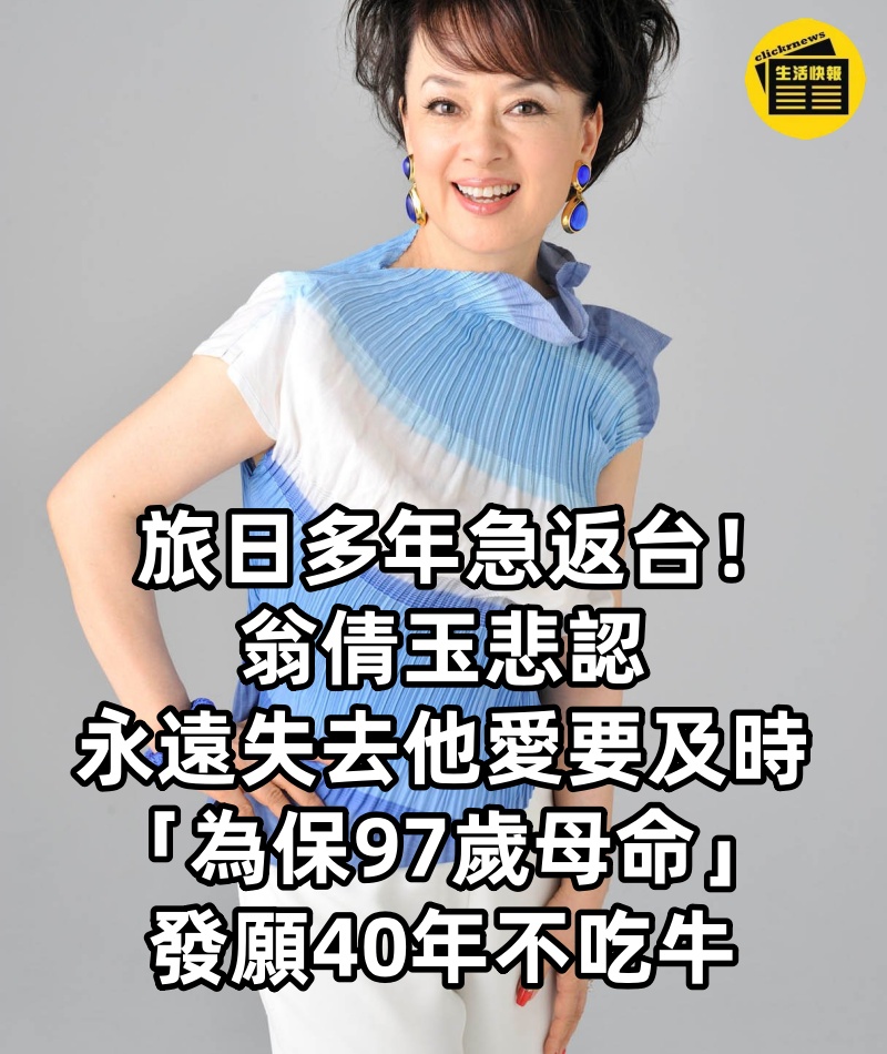 旅日多年急返台!翁倩玉悲認「永遠失去他」:愛要及時 「為保97歲母命」發願40年不吃牛