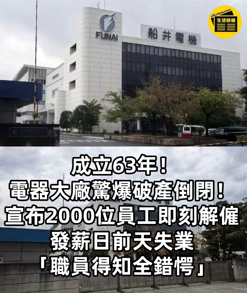 成立63年!電器大廠驚爆破產倒閉!宣布「2000位員工即刻解僱」發薪日前天失業「職員得知全錯愕」