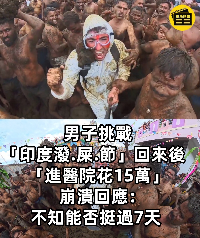 男子挑戰「印度潑.屎.節」回來後「進醫院花15萬」崩潰回應:不知能否挺過7天