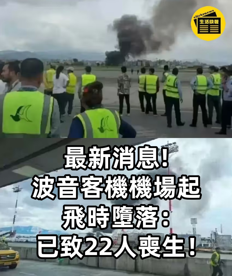 最新消息,波音客機機場起飛時墮落: 已致22人喪生!