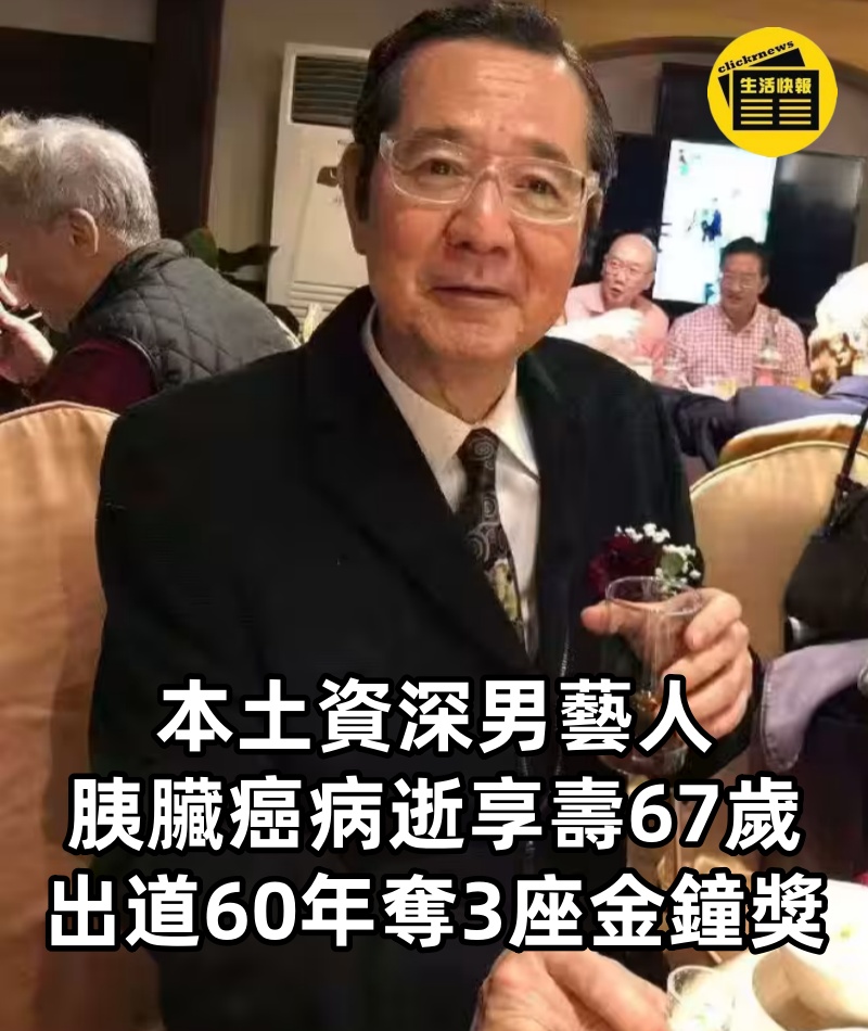 本土資深男藝人,胰臟癌病逝享壽67歲 出道60年奪3座金鐘獎…