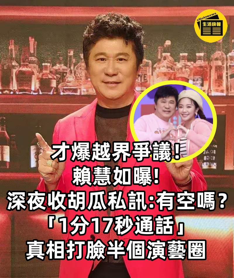 才爆越界爭議!賴慧如曝「深夜收胡瓜私訊」:有空嗎?「1分17秒通話」真相打臉半個演藝圈