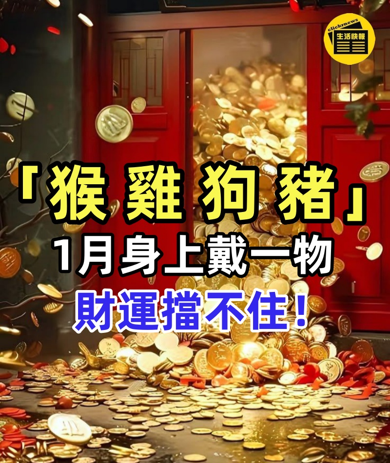 生肖「屬猴、屬雞、屬狗、屬豬人」 1月身上戴一物,財運擋不住 !
