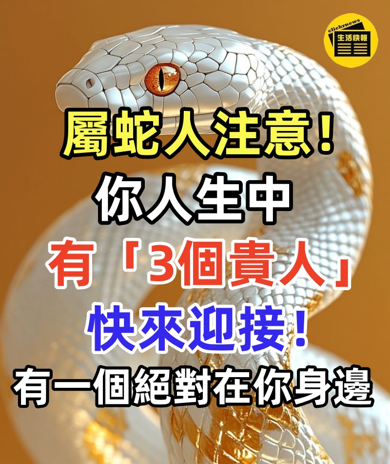 1/7 屬蛇人一生務必把握「3個貴人」人生一帆風順 屬蛇人:你人生中3個貴人,有一個絕對在你身邊!家裡有屬蛇的要注意!生肖屬蛇的人外表淡漠冷靜,但其實內心十分熱情。 在新朋友面前,比較保護自己,但與朋友相交較深後,便會處處關懷對方。 做事有計劃、有目標、能夠循序漸進地達到成功。