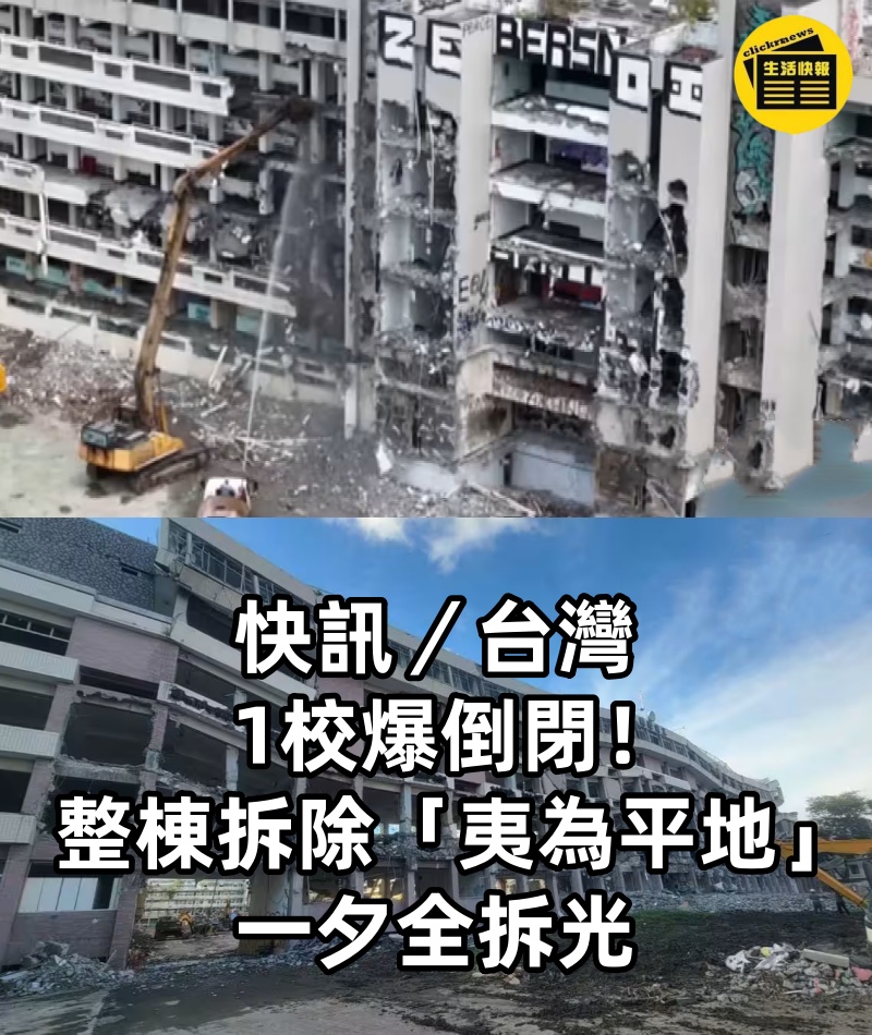 快訊/台灣1校爆倒閉! 整棟拆除「夷為平地」 一夕全拆光