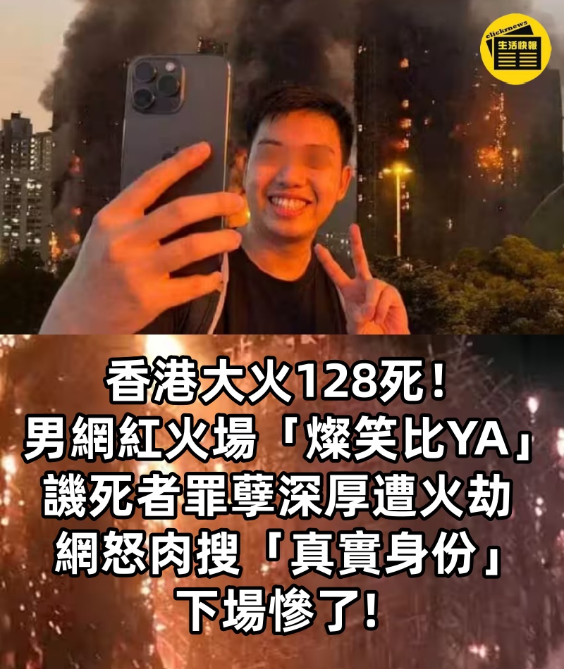 香港大火128死!男網紅火場「燦笑比YA」譏死者「罪孽深厚遭火劫」網怒肉搜「真實身份」下場慘了