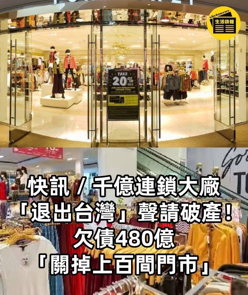 快訊 / 千億連鎖大廠「退出台灣」聲請破產!欠債480億「關掉上百間門市」