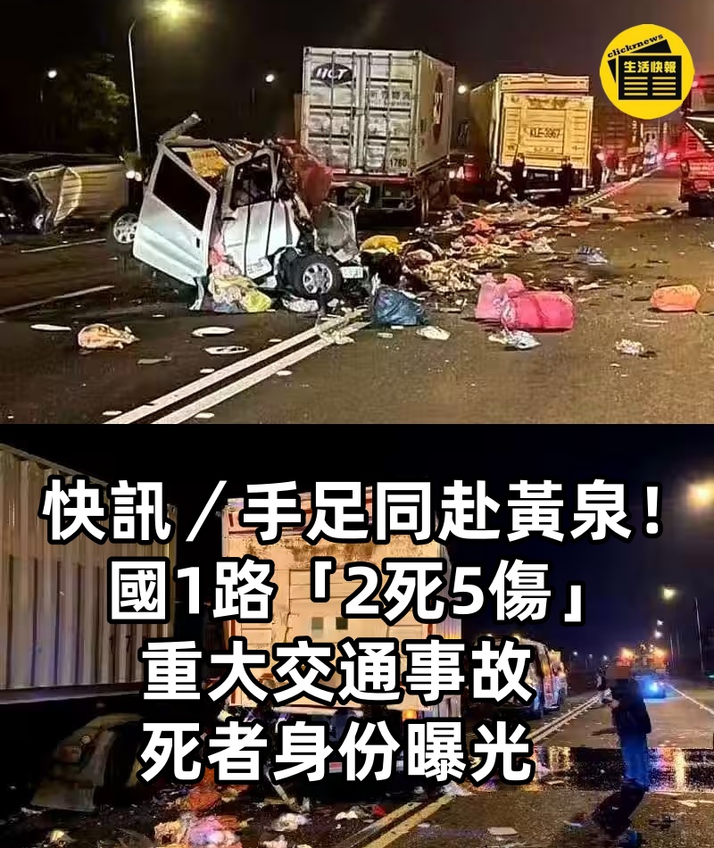 快訊/手足同赴黃泉! 國1路「2死5傷」重大交通事故,死者身份曝光