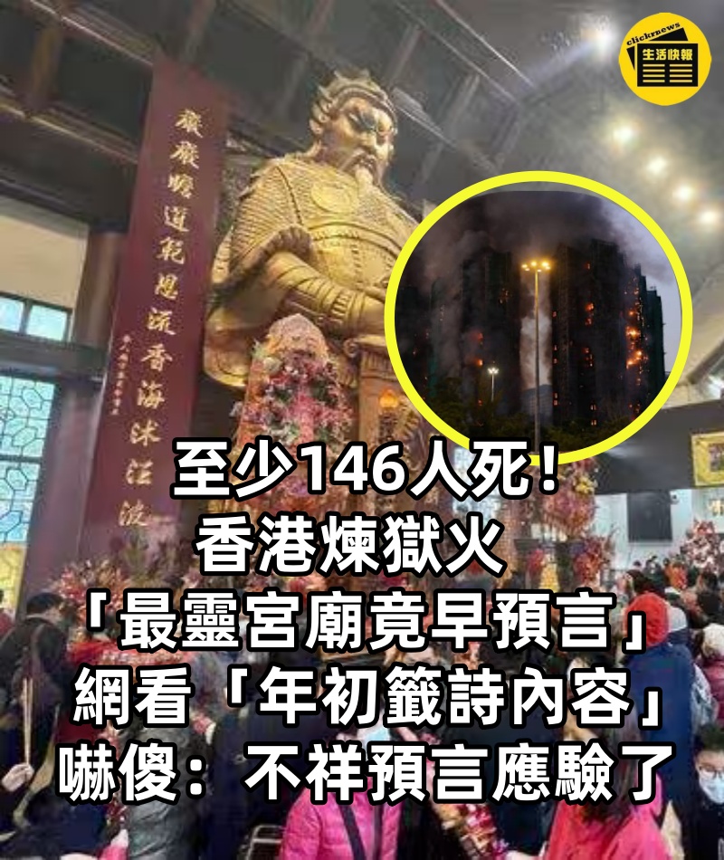 至少146人死!!香港煉獄火「最靈宮廟竟早預言」網看「年初籤詩內容」嚇傻:不祥預言應驗了