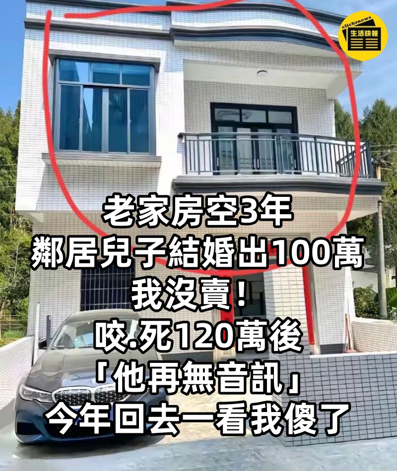 老家房空3年,鄰居兒子結婚出100萬我沒賣!咬.死120萬後「他再無音訊」,今年回去一看我傻了