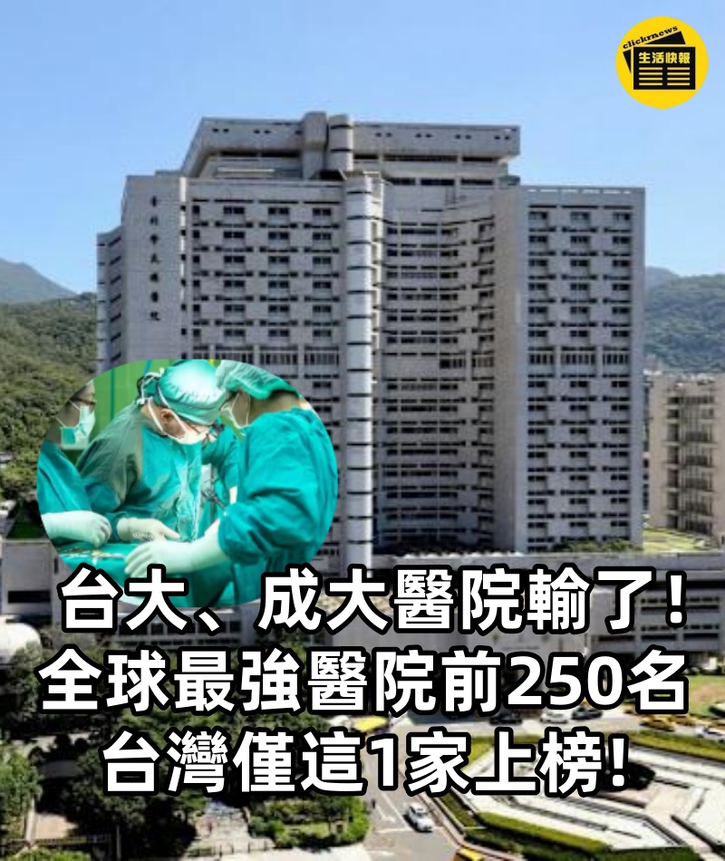 台大、成大醫院輸了!全球最強醫院前250名,台灣僅這1家上榜!