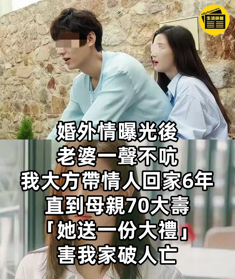 婚外情曝光後,老婆一聲不吭,我大方帶情人回家6年,直到母親70大壽「她送一份大禮」害我家破人亡