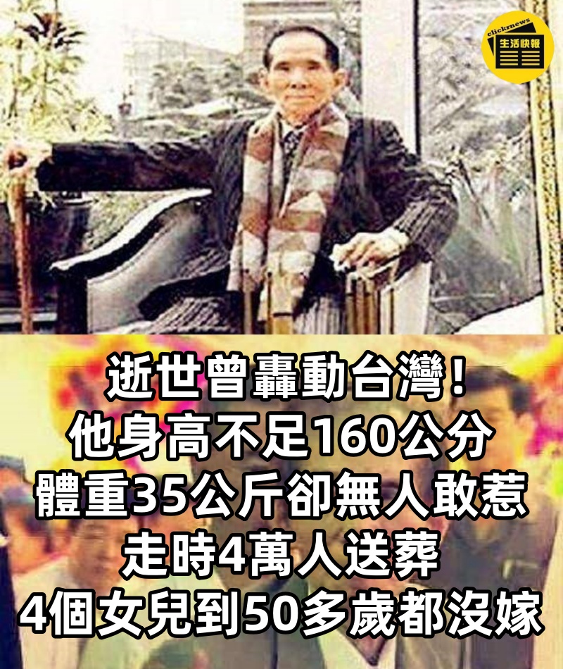 逝世曾轟動台灣!他身高不足160公分「體重35公斤」卻無人敢惹 走時4萬人送葬「4個女兒到50多歲都沒嫁」