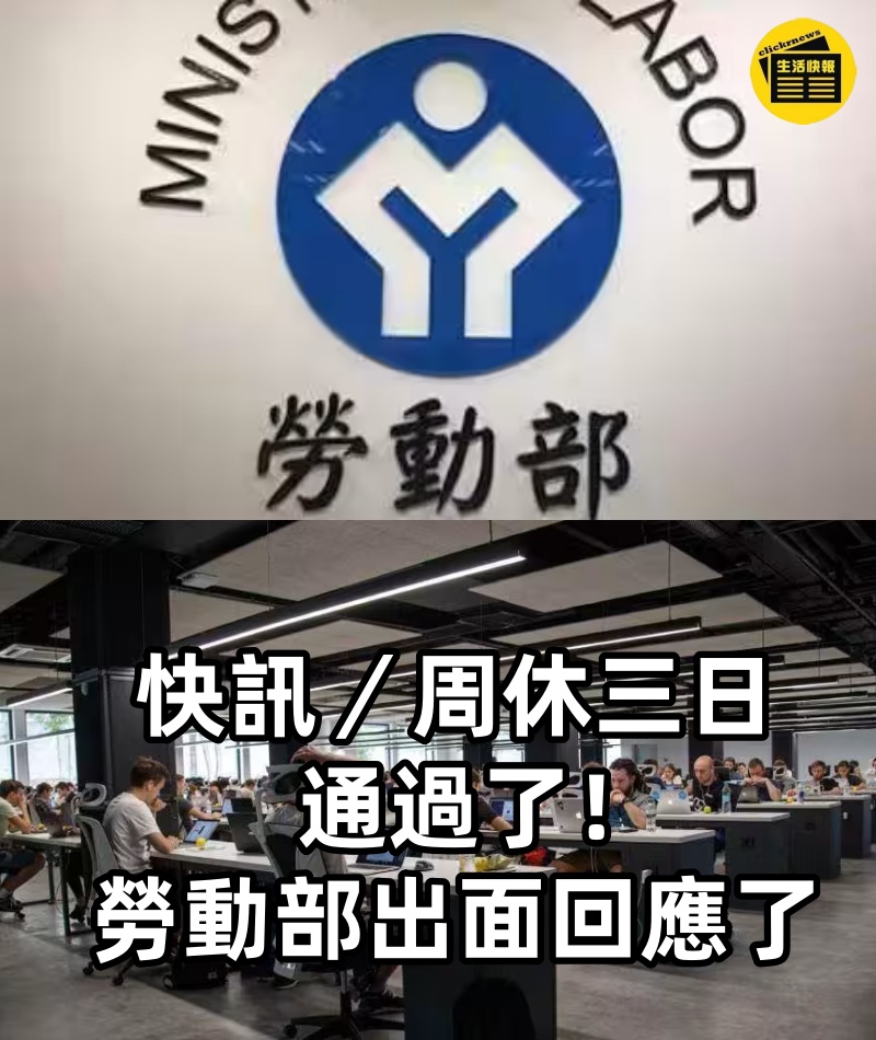 快訊/周休三日通過了!勞動部「出面回應了」