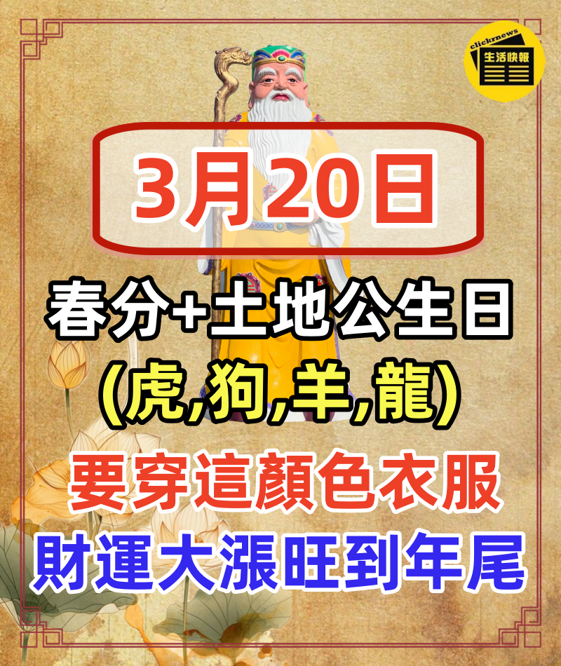 3月20日「春分+土地公生日」 屬虎、屬狗、屬羊、屬龍一定要穿「這顏色衣服」 財運大漲旺到年尾
