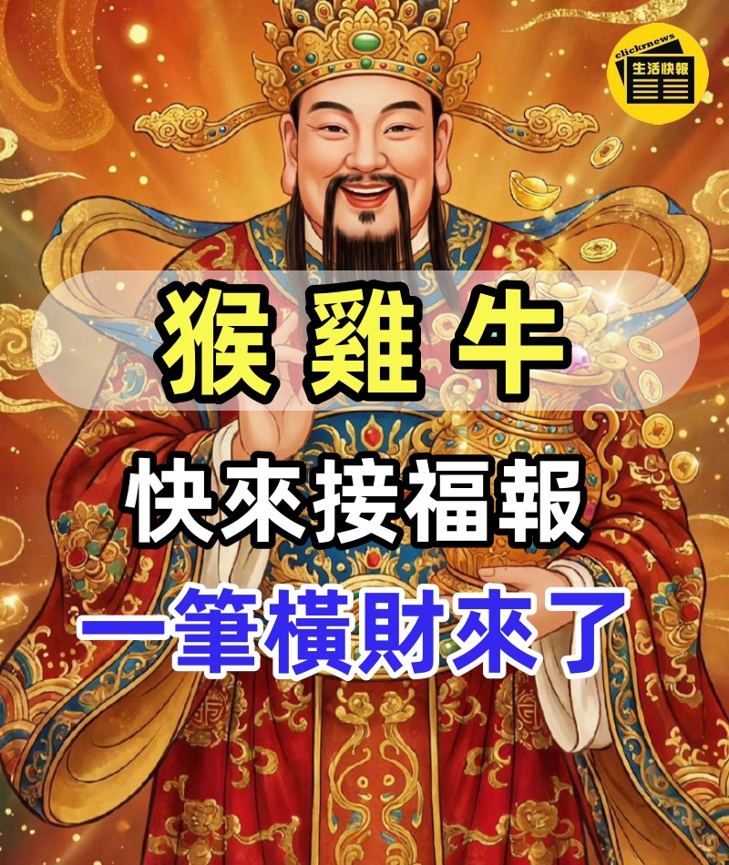 猴雞牛接福報:一筆橫財來了,鈔票大獎追著跑!記得提醒家裡人