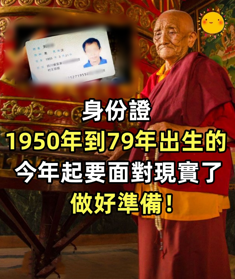 身份證1950年到1979年出生的人, 今年起或要面對現實了!做好準備!