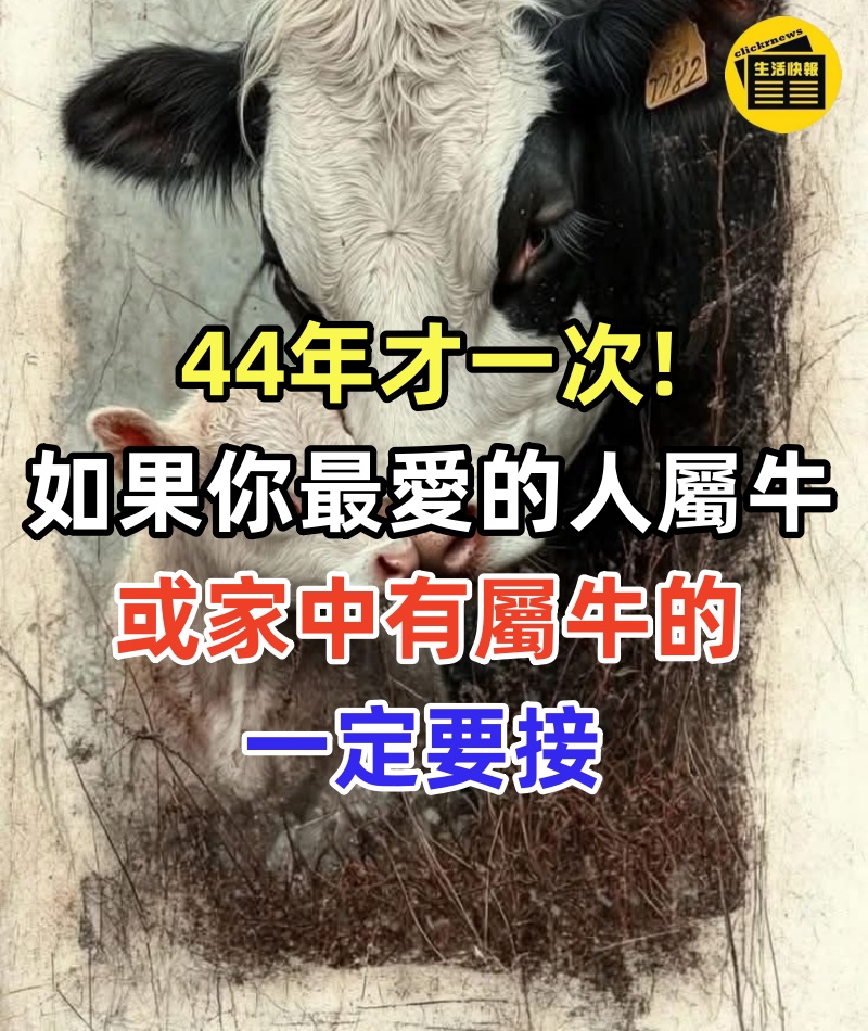 44年才一次!!! 如果你最愛的人屬牛,或家中有屬牛的,一定要接