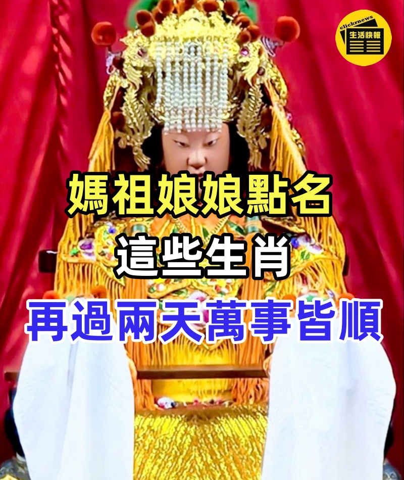 媽祖娘娘點名這些生肖,再過兩天萬事皆順! !