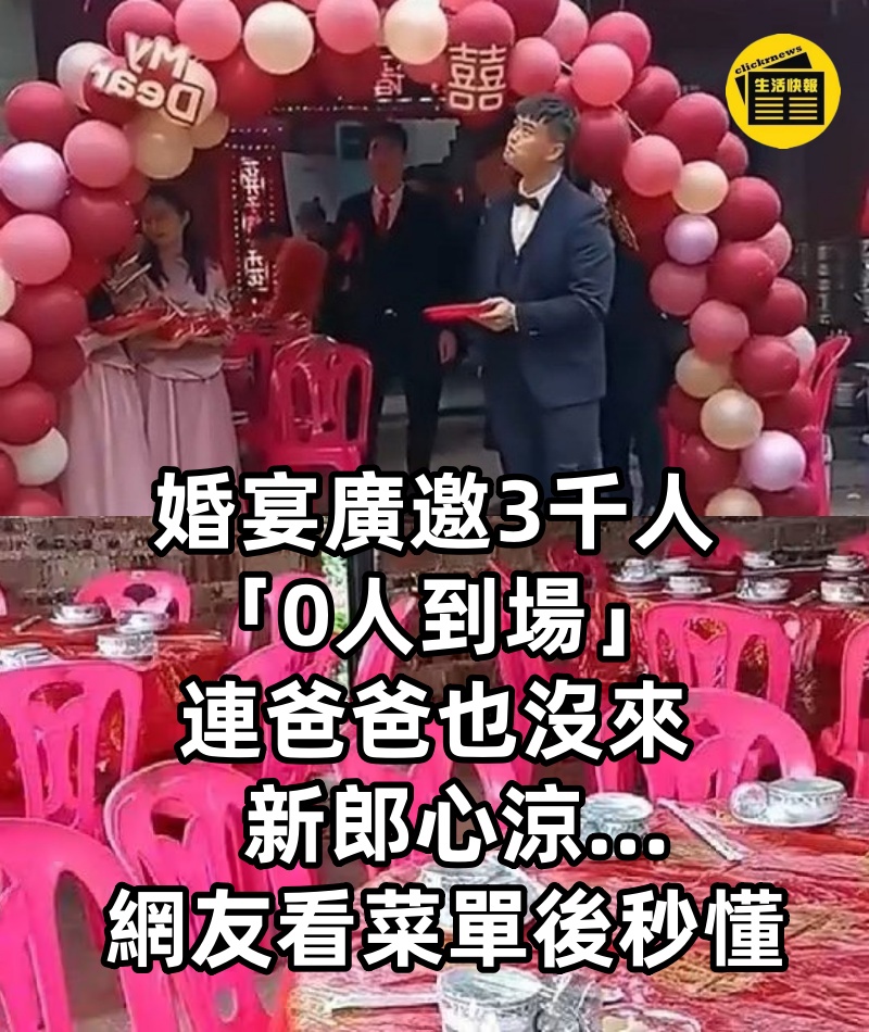 婚宴廣邀3千人「0人到場」,連爸爸也沒來 新郎心涼... 網友看菜單後秒懂