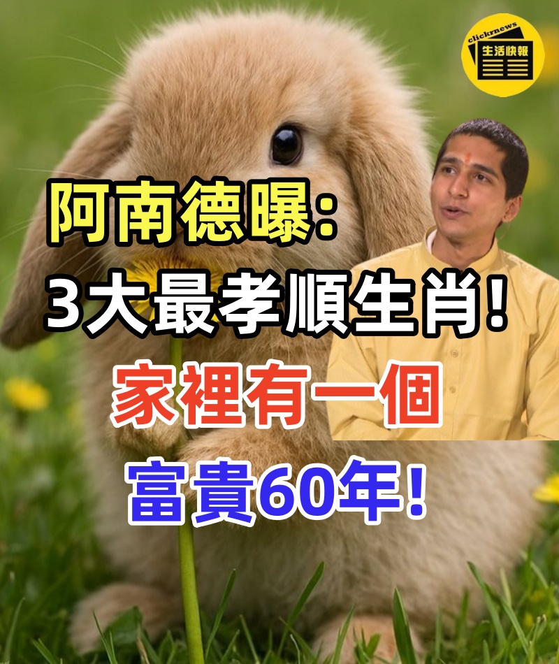 1/6 ????阿南德預言曝光!這3大生肖「天生孝順命」!家裡有一個,富貴旺三代!???? ???? 【預言揭密】 印度神童阿南德最新預測指出,「孝順能量」將在2026年形成特殊磁場!其中「兔、羊、狗」三大生肖,天生自帶孝感動天福報,不僅自己運勢好,更能帶旺全家財運、健康、事業!