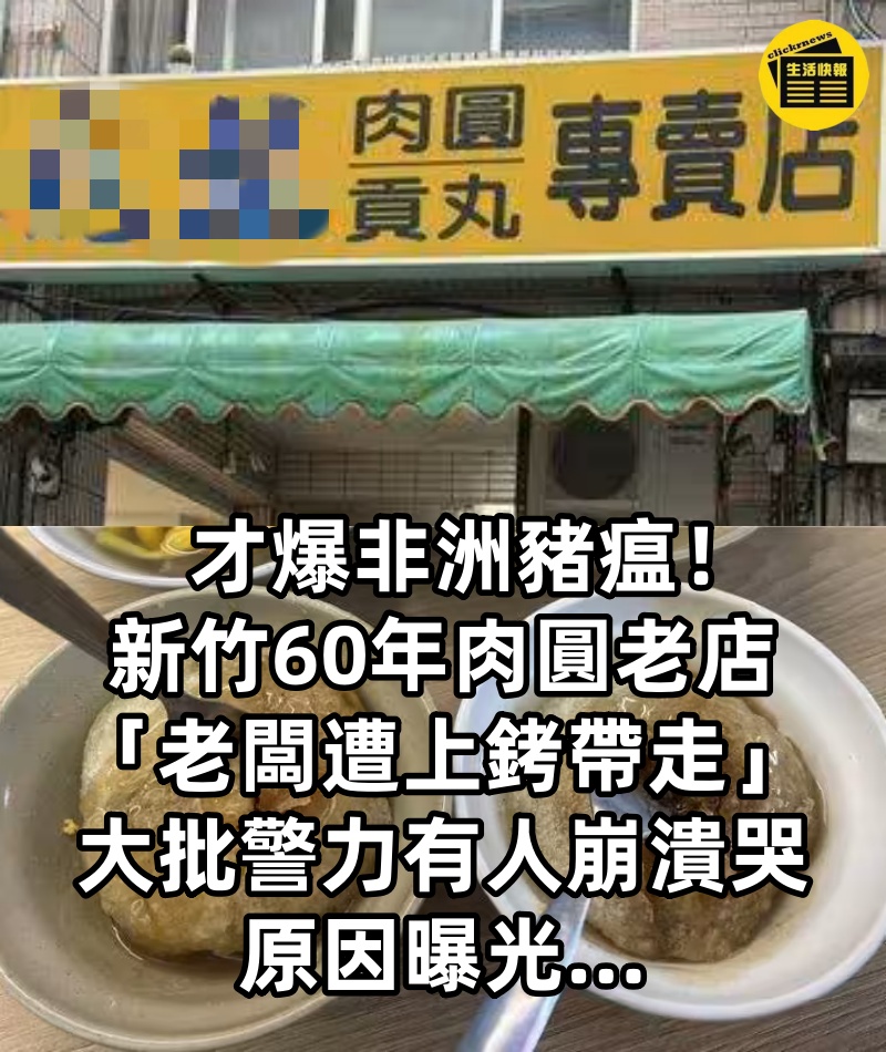 才爆非洲豬瘟!新竹60年肉圓老店「老闆遭上銬帶走」大批警力「有人崩潰哭」原因曝光…