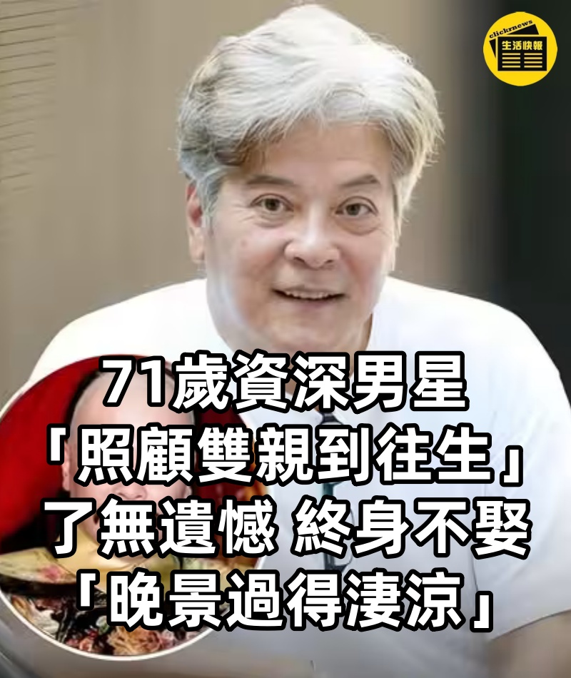 71歲資深男星「照顧雙親到往生」了無遺憾 終身不娶「晚景過得淒涼」