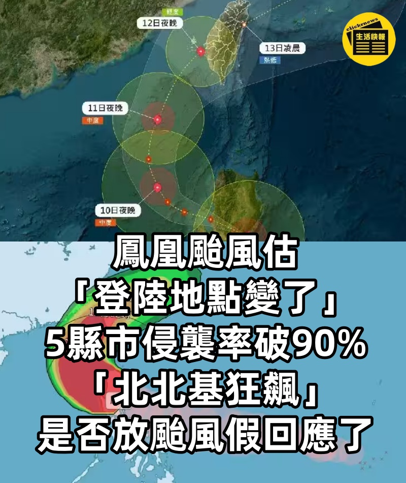鳳凰颱風估「登陸地點變了」!5縣市侵襲率破90%「北北基狂飆」 是否放颱風假回應了