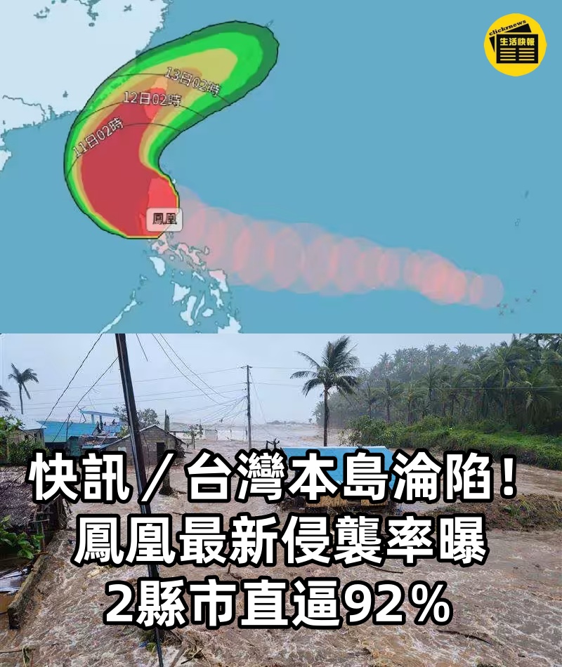 快訊/台灣本島淪陷!鳳凰最新侵襲率曝,2縣市直逼92%