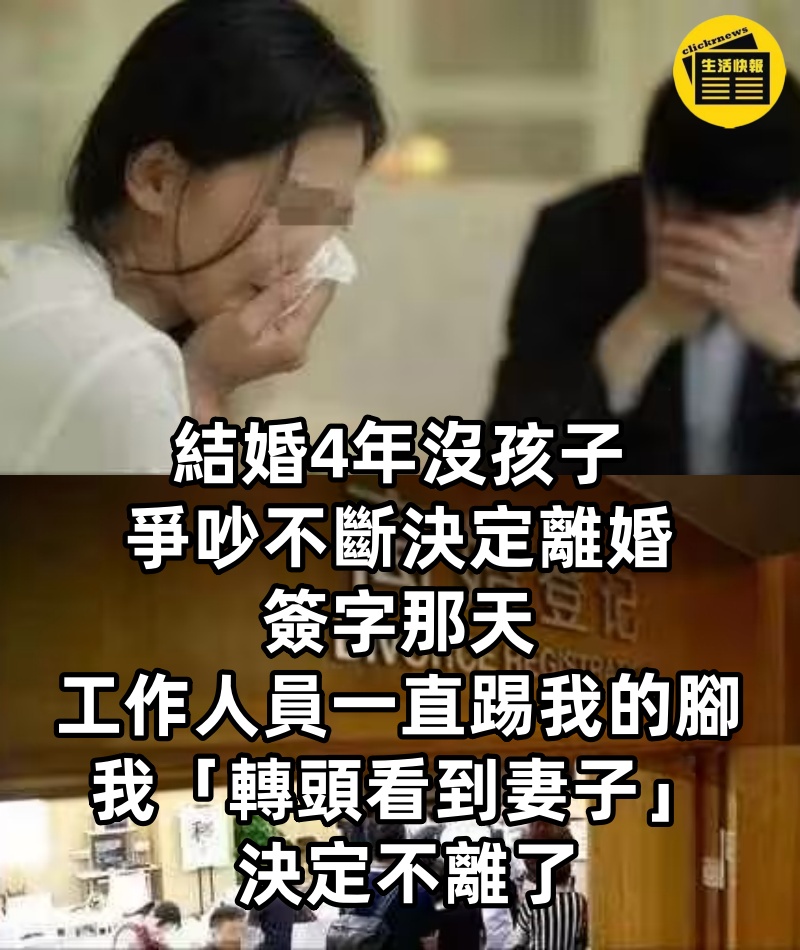 結婚4年沒孩子,爭吵不斷決定離婚,簽字那天「工作人員一直踢我的腳」我「轉頭看到妻子」: 決定不離了