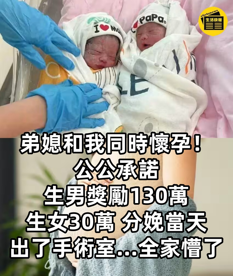 弟媳和我同時懷孕!公公承諾「生男獎勵130萬,生女30萬」分娩當天,出了手術室...全家懵了
